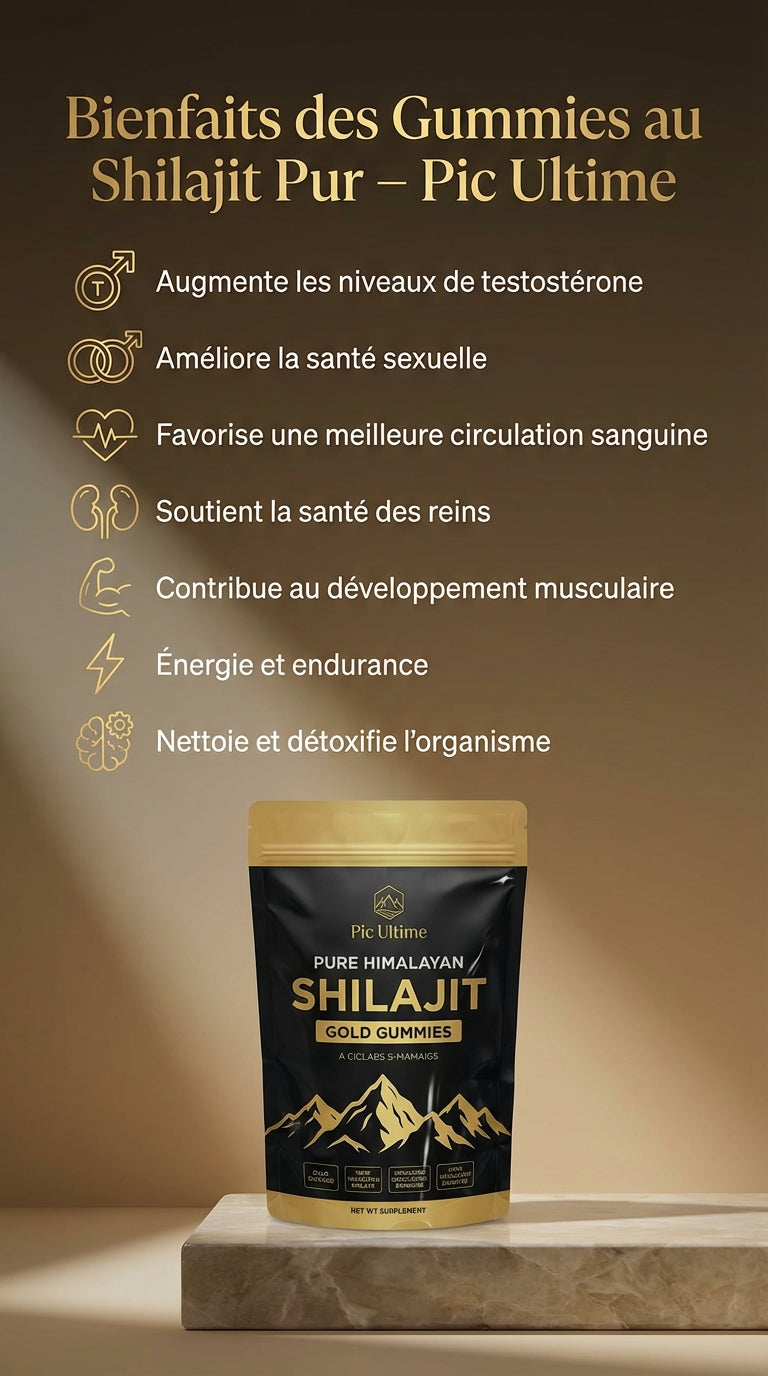 Les gummies Pic Ultime® Pure Shilajit sont une solution pure, testée en laboratoire et naturelle qui aide les hommes à rester au top de leur forme physique, mentale et sexuelle.